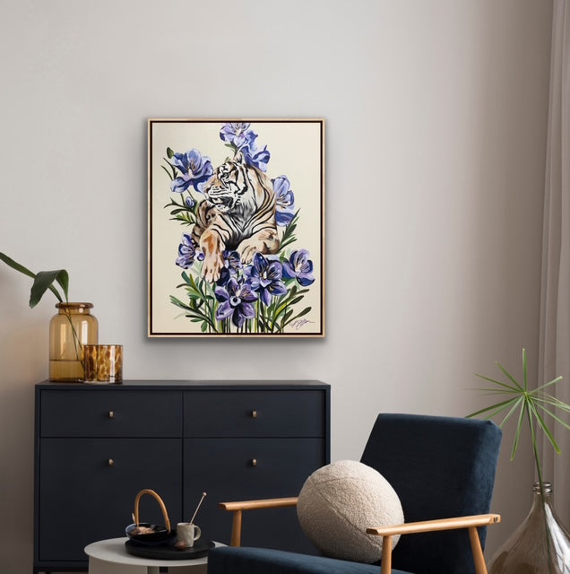 Original acrylic painting professionally framed in raw oak & ready to hang.